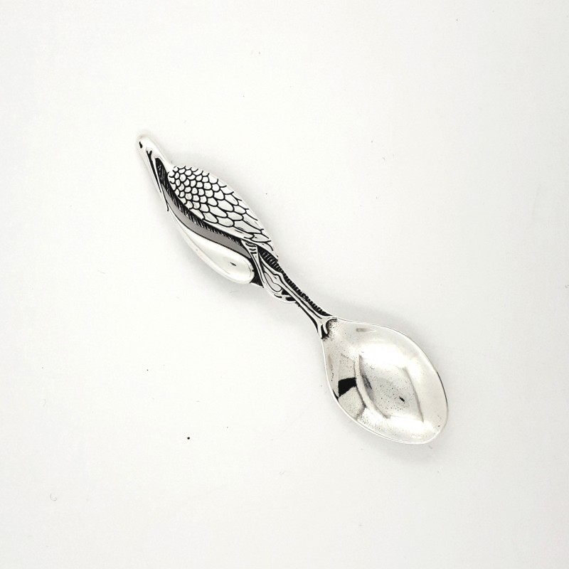 Suvenyrinis šaukštelis "Gandras". Tamsintas sidabras. Praba 925.