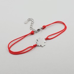 Dvigubas raudonas siūlas. Rodžiuoto sidabro elementas. Prailginimo grandinėlė. Praba 925.