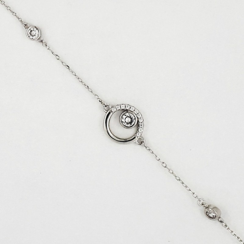 Rodžiuoto sidabro "inkarinė" grandinėlė su papuošimo elementais. Praba 925. Cirkonai. Su prailginimo grandinėle.