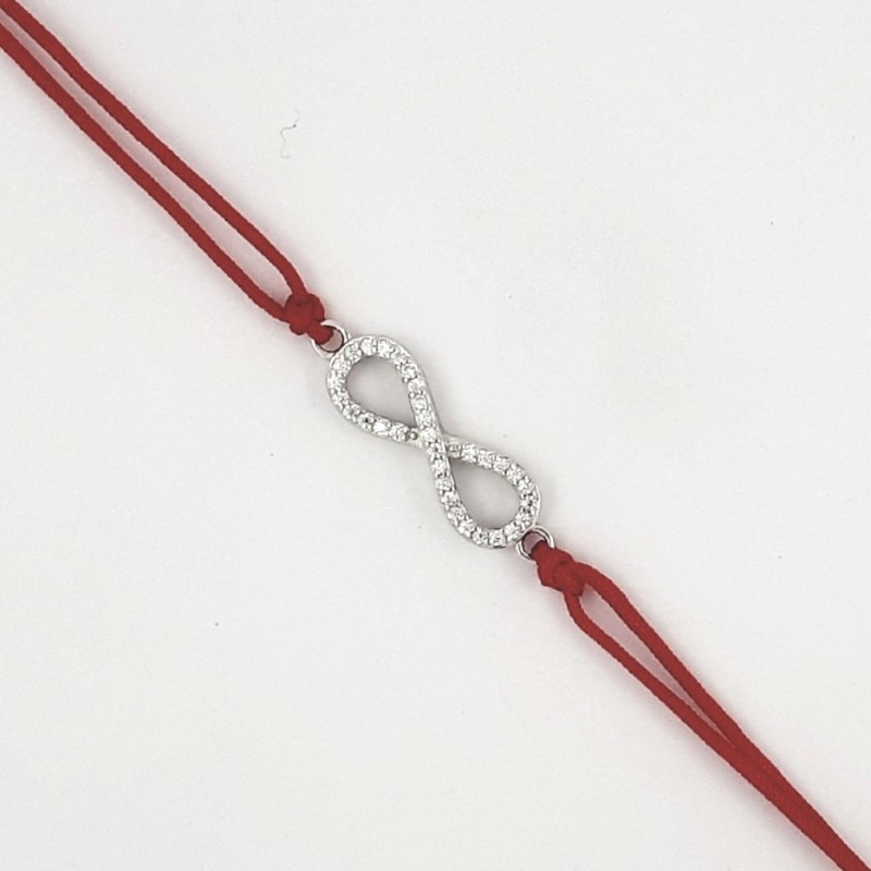 Dvigubas raudonas siūlas. Rodžiuoto sidabro elementas su cirkonais - begalybė.