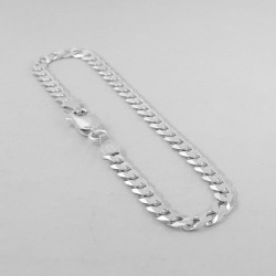 Balto sidabro vyriška apyrankė.Praba 925. Klasikinio (Curb) pynimo iš 1.4 mm storio sidabrinės vielos grandinėlė, plokščiai šlifuota (Extraflat), poliruojama ir padengiama 999 prabos sidabru dėl didesnio atsparumo išorės poveikiui.