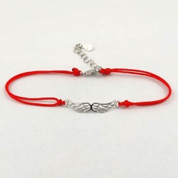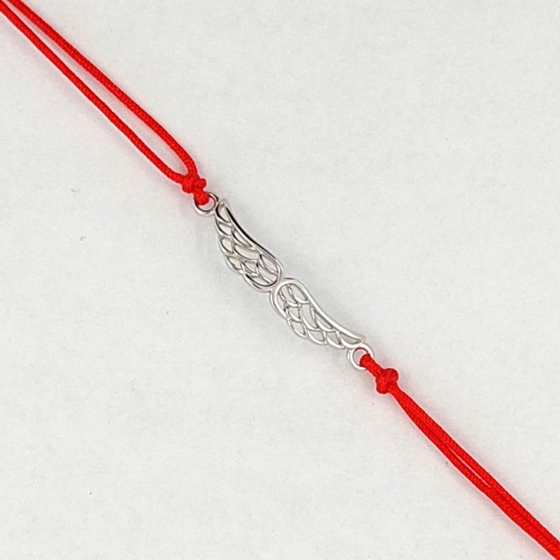 Dvigubas raudonas siūlas. Rodžiuoto sidabro elementas Angelo sparnai. Prailginimo grandinėlė. Praba 925.
