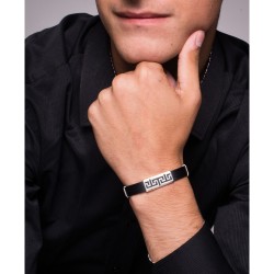Baltas ir paauksuotas sidabras. Praba 925. Kaučiukas. Ilgis 20 cm. Plotis 10 mm.