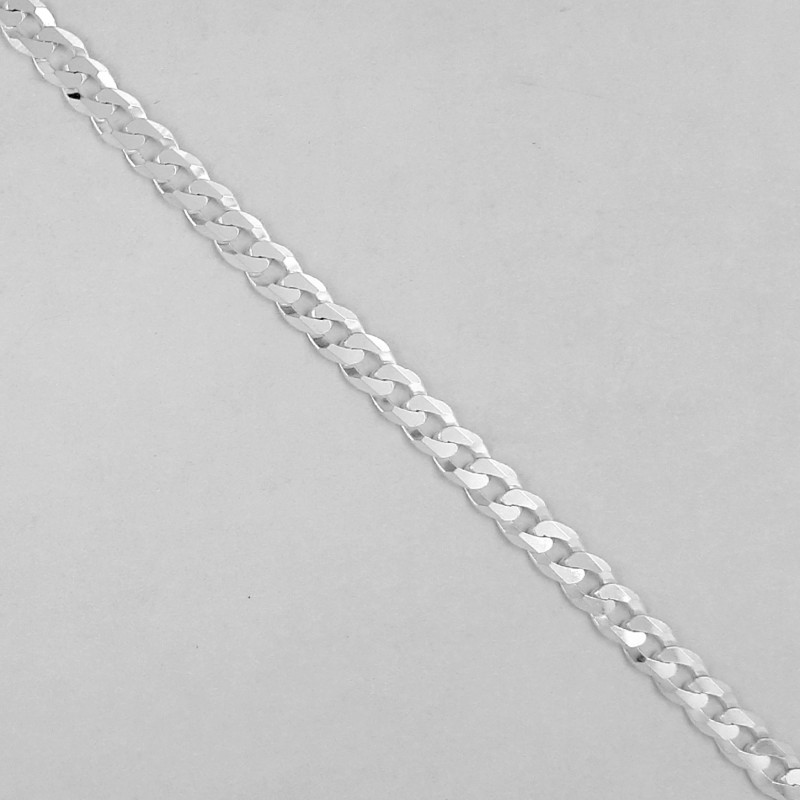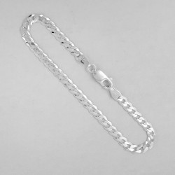 Balto sidabro vyriška apyrankė.Praba 925. Klasikinio (Curb) pynimo iš 1.2 mm storio sidabrinės vielos grandinėlė, plokščiai šlifuota (Extraflat), poliruojama ir padengiama 999 prabos sidabru dėl didesnio atsparumo išorės poveikiui.