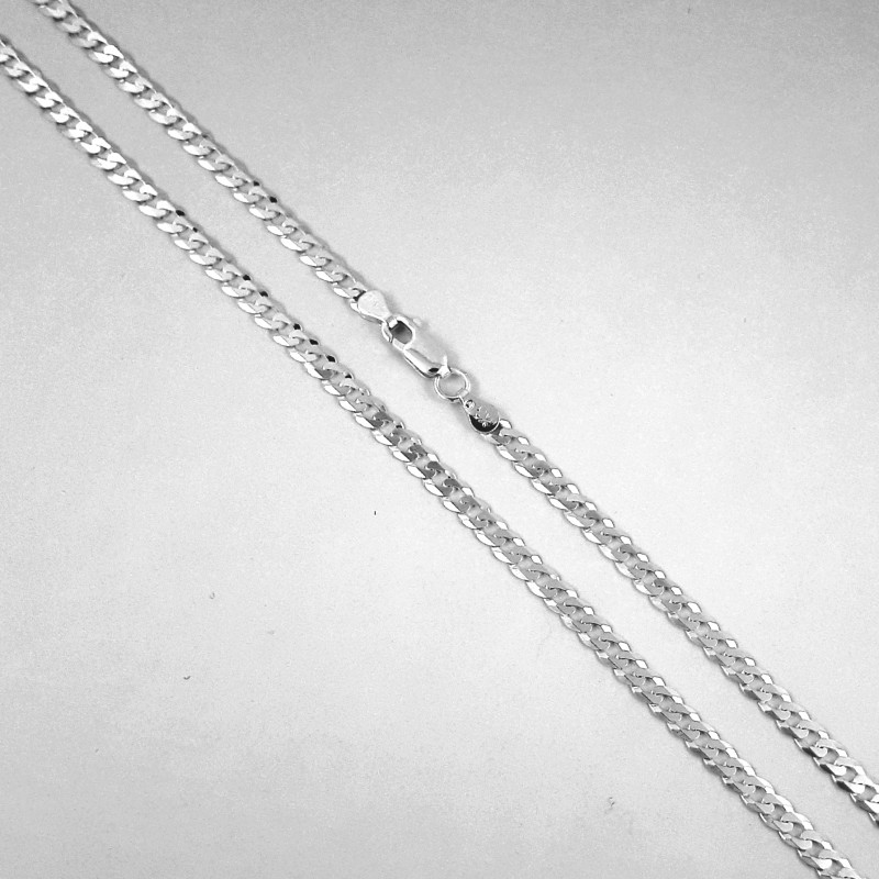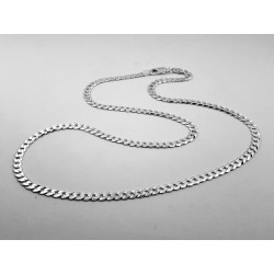 Balto sidabro vyriška grandinėlė. Praba 925. Klasikinio (Curb) pynimo iš 0,8 mm storio sidabrinės vielos grandinėlė, plokščiai šlifuota (Extraflat), poliruojama ir padengiama 999 prabos sidabru dėl didesnio atsparumo išorės poveikiui.
