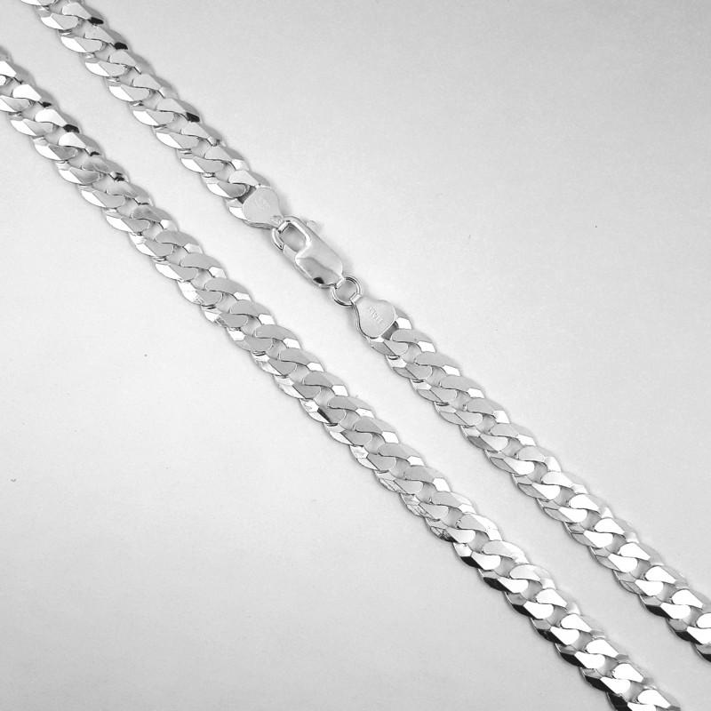 Balto sidabro vyriška grandinėlė.Praba 925. Klasikinio (Curb) pynimo iš 1.8 mm storio sidabrinės vielos grandinėlė, plokščiai šlifuota (Extraflat), poliruojama ir padengiama 999 prabos sidabru dėl didesnio atsparumo išorės poveikiui.
