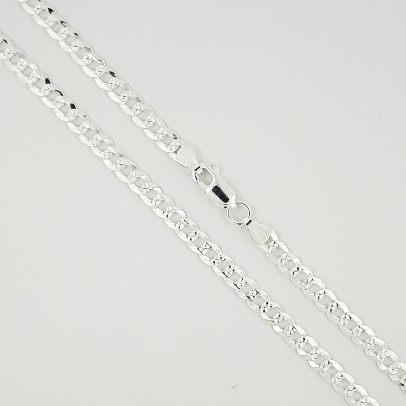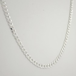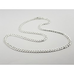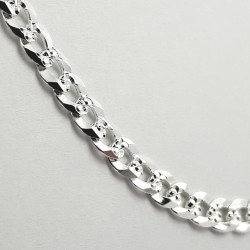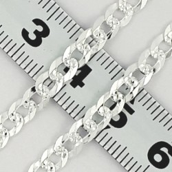 Balto sidabro grandinėlė. Praba 925. Klasikinio (Curb) pynimo iš 1 mm storio sidabrinės vielos grandinėlė, plokščiai šlifuota (Extraflat), graviruota (Pave), poliruojama ir padengiama 999 prabos sidabru dėl didesnio atsparumo išorės poveikiui.