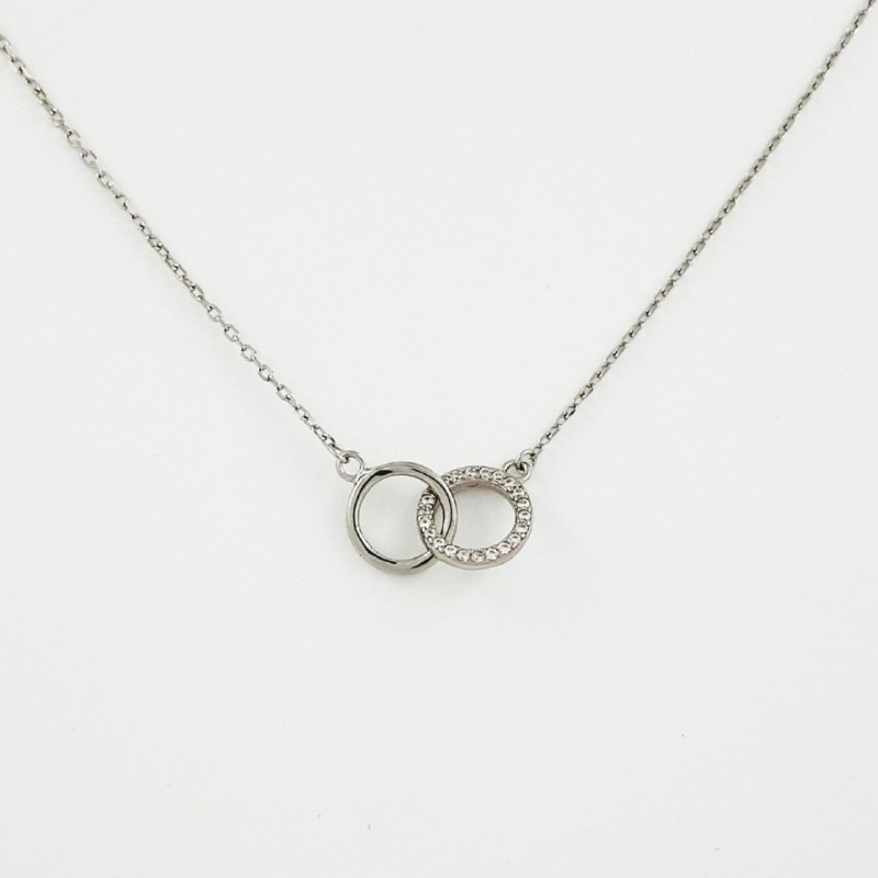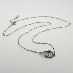 Rodžiuoto sidabro "inkarinio" pynimo grandinėlė su nenuimamu pakabuku, papuoštu cirkonais. Prailginimo grandinėlė leidžia keisti ilgį nuo 42 iki 45 cm. Praba 925.