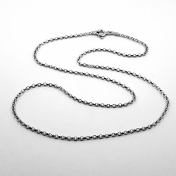 Sidabrinė, rodžiu dengta grandinėlė iš apvalių šlifuotų žiedelių. Tinka įvairiems pakabukams.