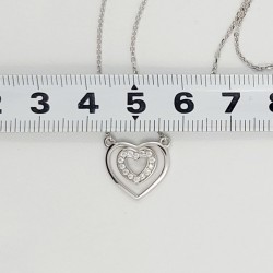 Rodžiuoto sidabro "inkarinio" pynimo grandinėlė. Nenuimamas pakabukas Širdelė papuoštas cirkonais. Prailginimo grandinėlė leidžia keisti ilgį nuo 42 iki 45 cm. Praba 925.