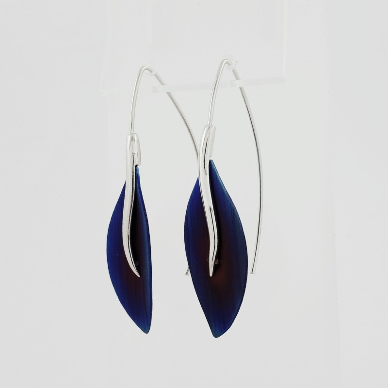 Kabantys titano ir sidabro auskarai. "Žuvytės" tipo užsegimas.