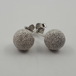 Rodžiu dengto sidabro auskarai burbuliukai. "Deimantavimo" būdu apdorotas paviršius.