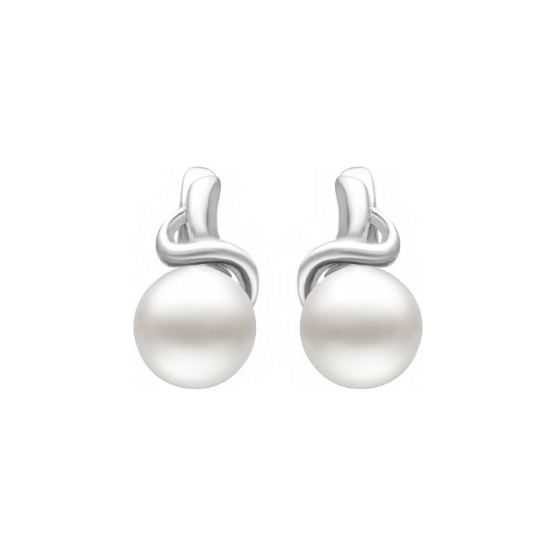 Sidabriniai rodžiuoti auskarai su perlais. Praba 925. Baltos spalvos kultūriniai perlai. Angliški užsegimai.