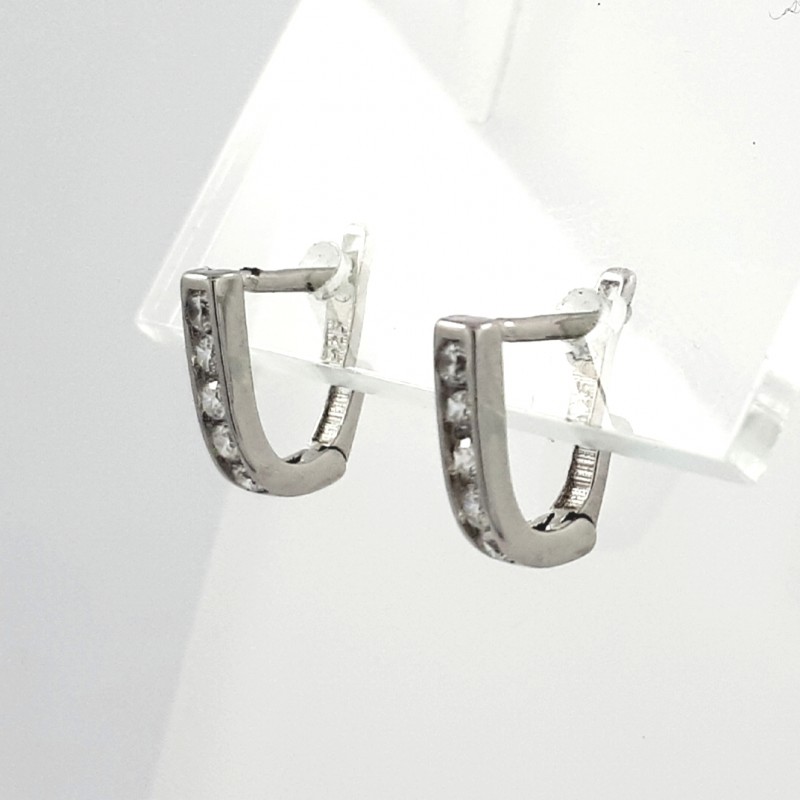 Auskarai iš rodžiuoto sidabro. Praba 925. Smulkių cirkonų eilė. Angliškas užsegimas.