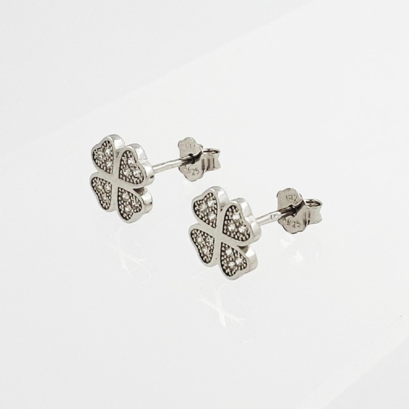 Rodžiuoto sidabro auskarai - keturlapis dobilas. Praba 925. Skersmuo - 9mm.