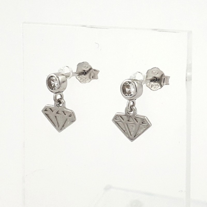 Rodžiuoto sidabro auskarai. Praba 925. Cirkonai. Užsegimai - strypeliai su fiksatoriais (vinukai).