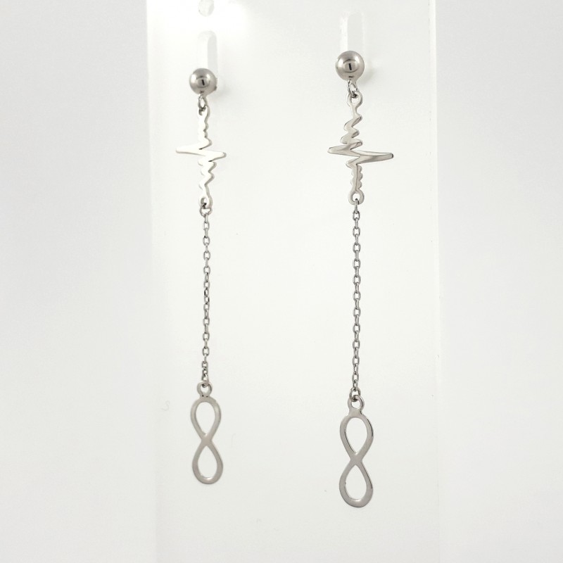 Rodžiuoto sidabro auskarai "Begalybė". Praba 925. Užsegimai - strypeliai su fiksatoriais (vinukai).