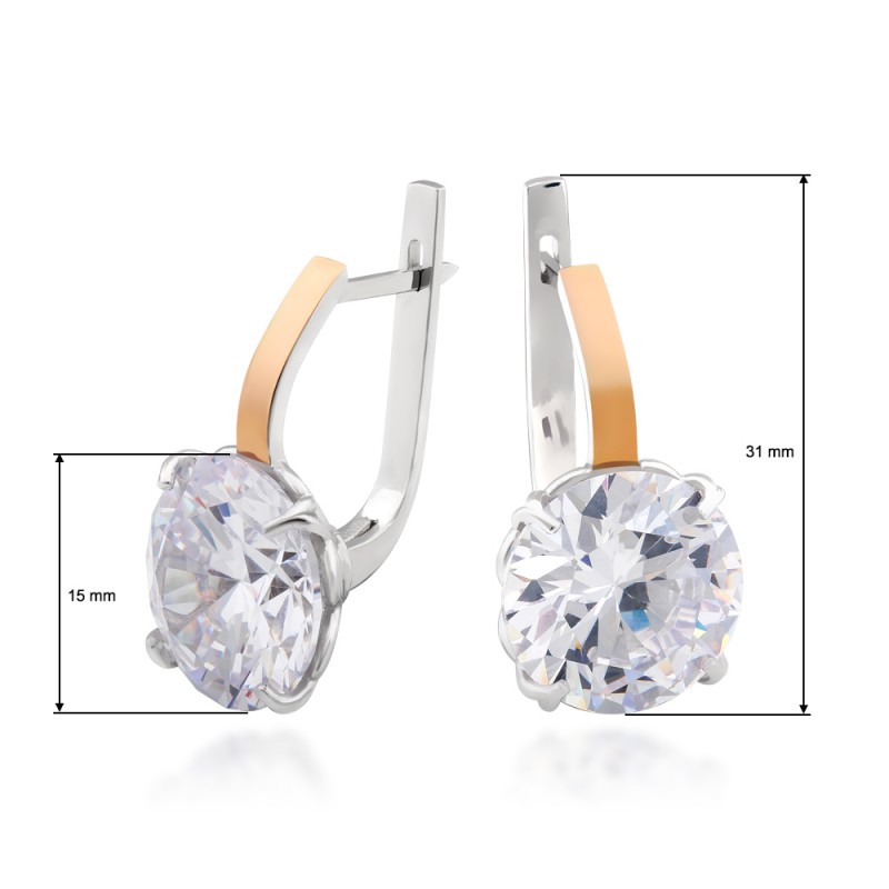 Sidabriniai auskarai pagaminti iš rodžiuoto sidabro . Praba 925. Angliškas užsegimas. Auksavimas. Au375-0.16g. Bespalviai cirkonai.