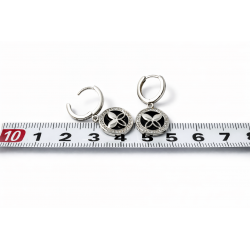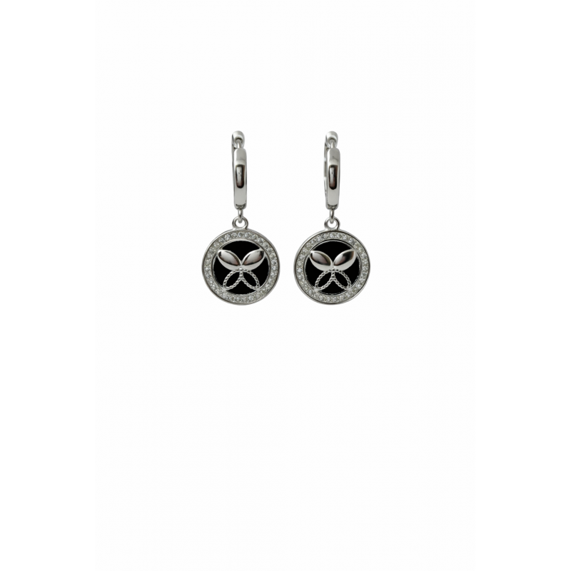 Sidabras dengtas rodžiu. Oniksas. Cirkonai. Praba 925. Užsegimai-uždaromas ratukas.