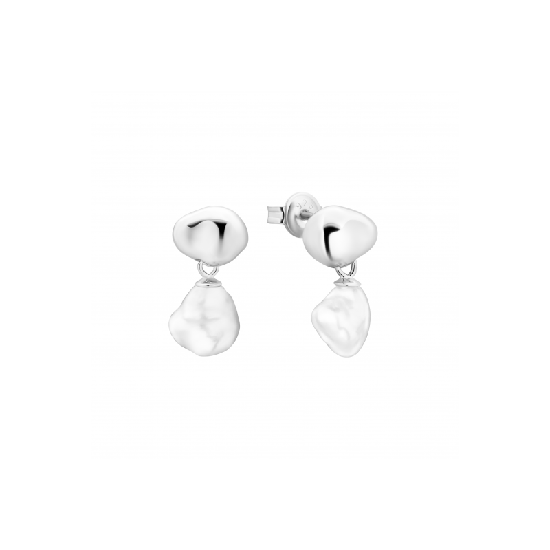 Sidabriniai auskarai su perlais. Praba 925. Balti kultūriniai (kultivuoti) perlai. Užsegimai - strypeliai su fiksatoriais (vinukai).